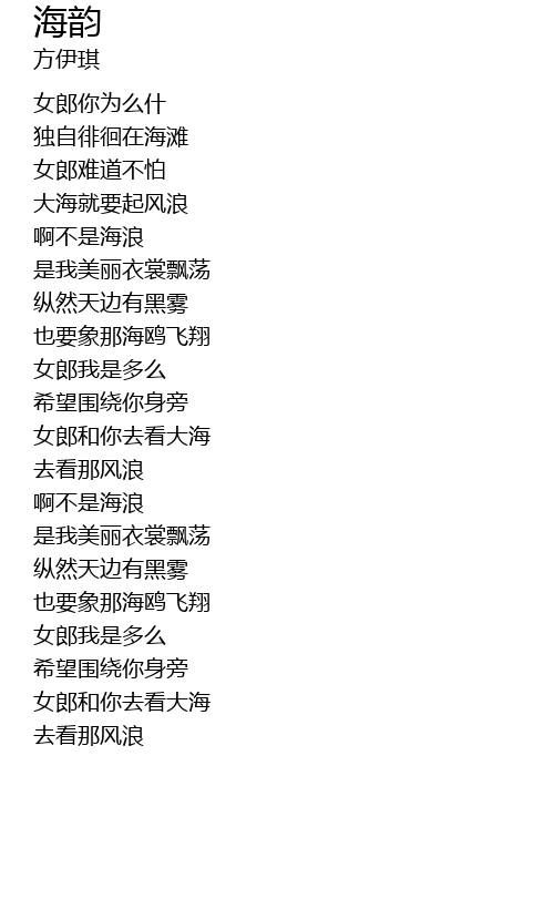 | [01:47.670] | 女郎和你去看大海 |