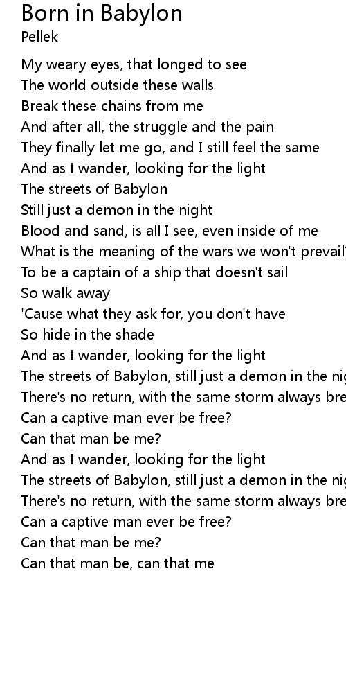 The streets of Babylon, still just a demon in the night |