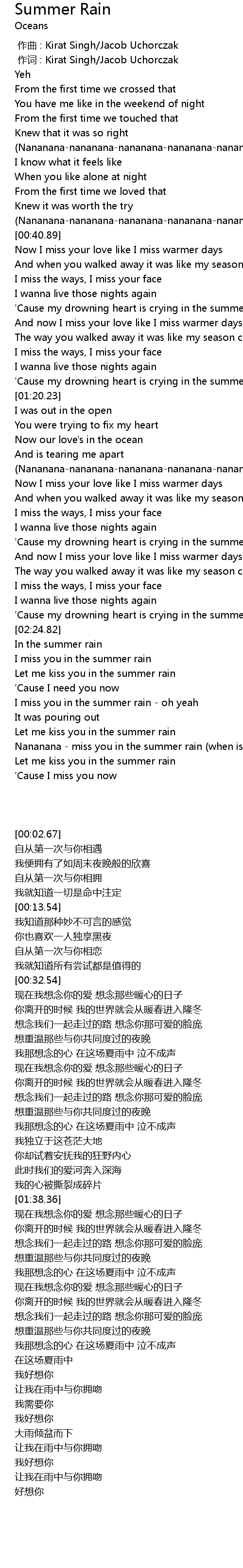 | [02:45.41] | I miss you in the summer rain |