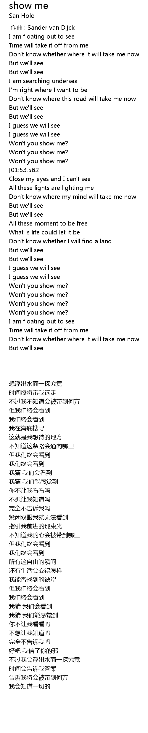 | [01:37.941] | Won' t you show me? |
