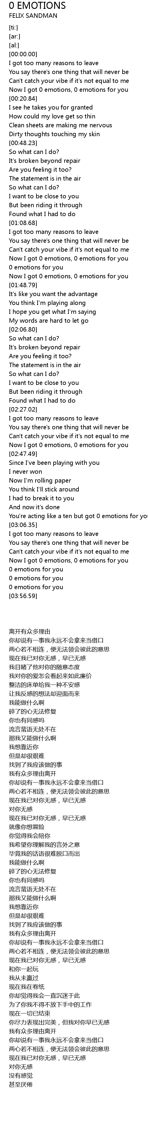 Now I got 0 emotions, 0 emotions for you |