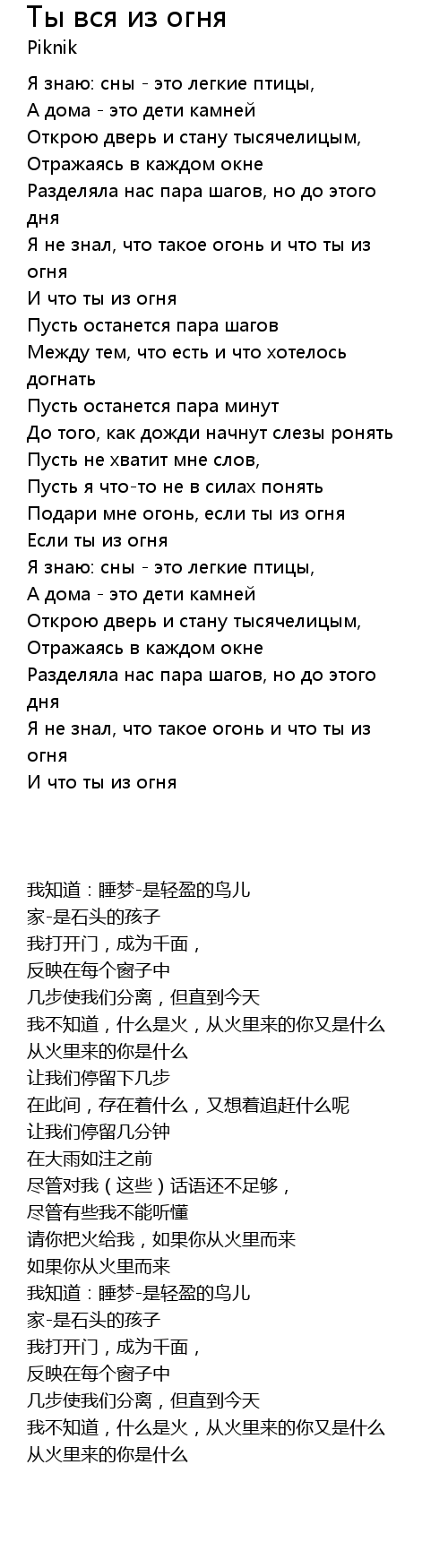 Я не знал, что такое огонь и что ты из огня |