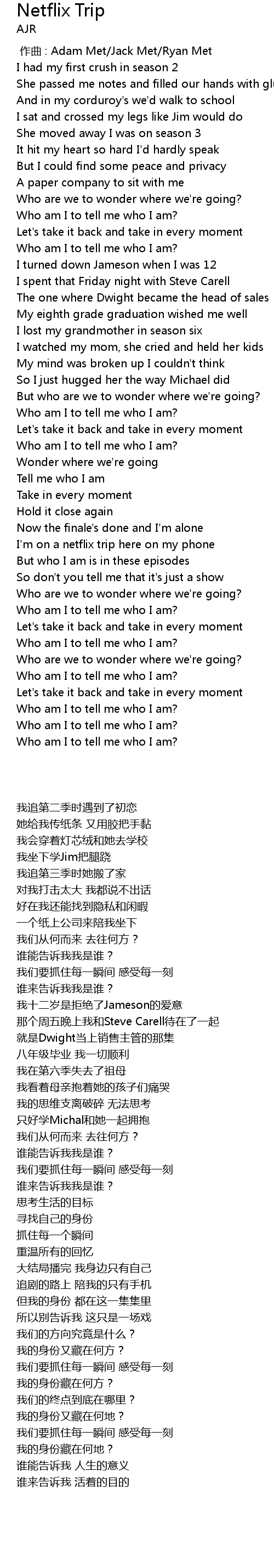 | [02:46.72] | I' m on a netflix trip here on my phone |