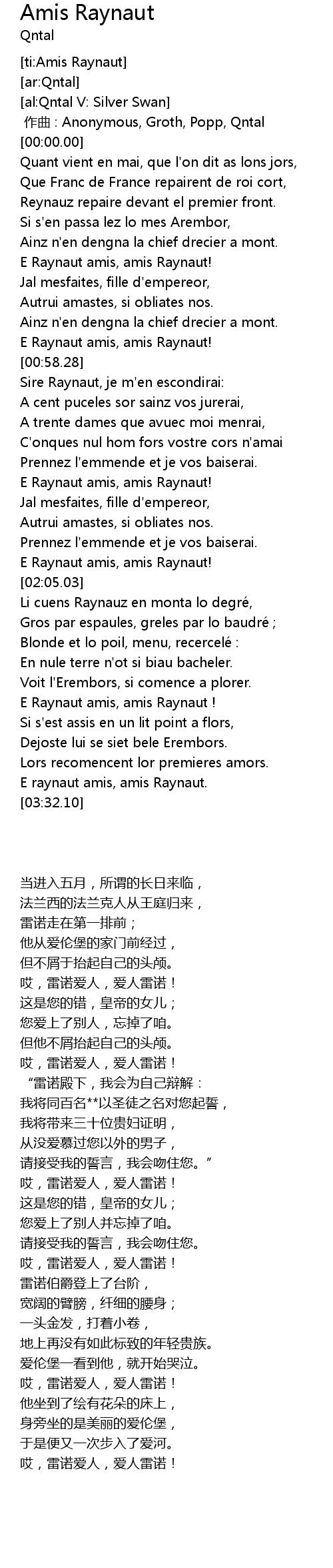 | [02:43.58] | Li cuens Raynauz en monta lo degre, |