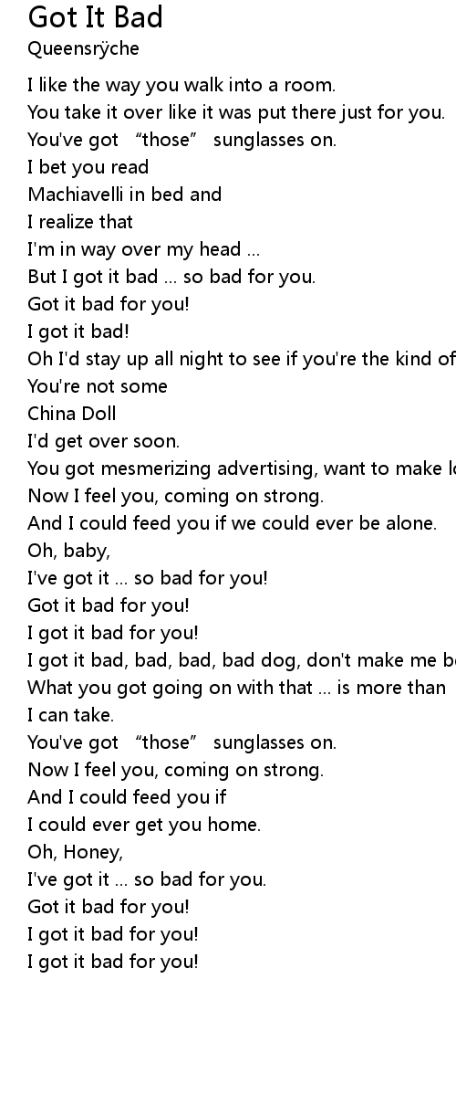 | I got it bad for you! |
