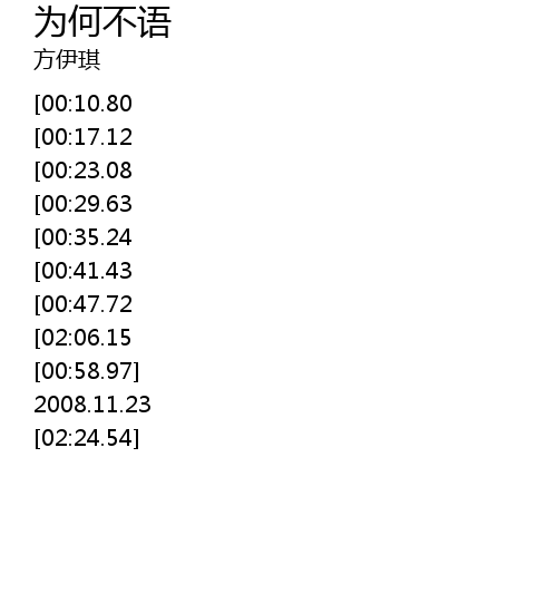 | [02:12.06][02:06.15][00:53.59] | 为何不语是痴亦醉 |