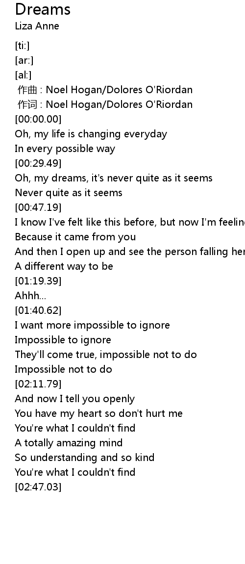 | [00:34.78] | Oh, my dreams, it' s never quite as it seems |
