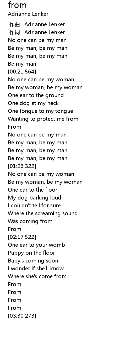 | [00:01.000] | zuò cí : Adrianne Lenker |