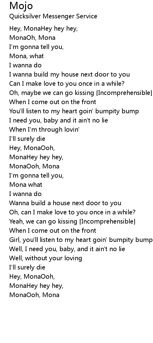 Hey, MonaHey hey hey, |