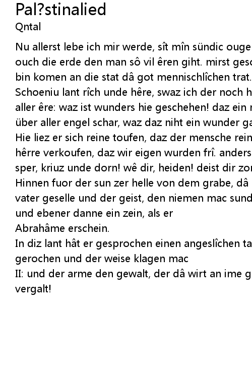 | Nu allerst lebe ich mir werde, s t m n sü ndic ouge siht daz reine lant und ouch die erde den man s vil ren giht. mirst geschehen des ich ie bat, ich bin komen an die stat d got mennischl chen trat. | |
