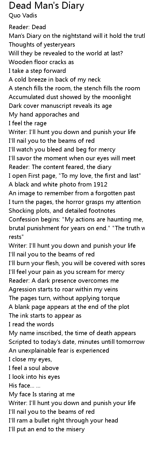 Confession begins: "My actions are haunting me, I must confess. But I fear brutal punishment for years on end." "The truth will stay with me untill my body rests" |