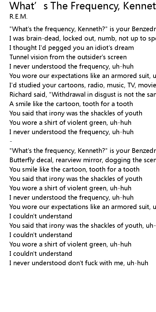 "What's the frequency, Kenneth?" is your Benzedrine, uh-huh |
