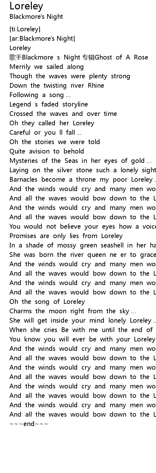 | [00:36.204] | Oh they called her Loreley |