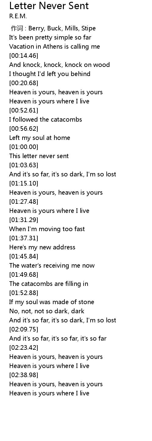 | [00:00.00] | zuò cí : Berry, Buck, Mills, Stipe |