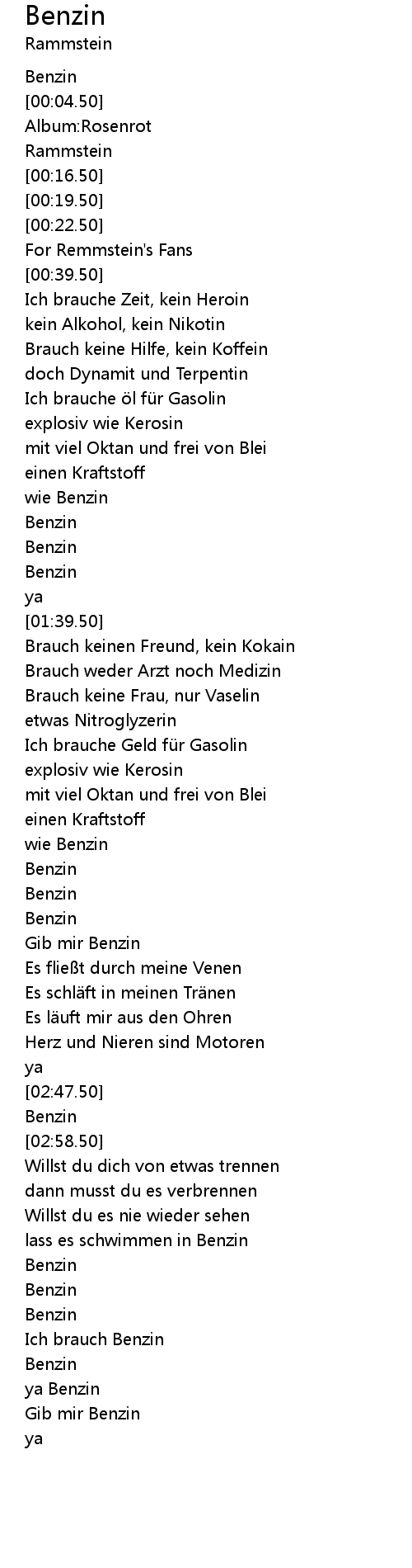 | [03:27.50] | Ich brauch Benzin |