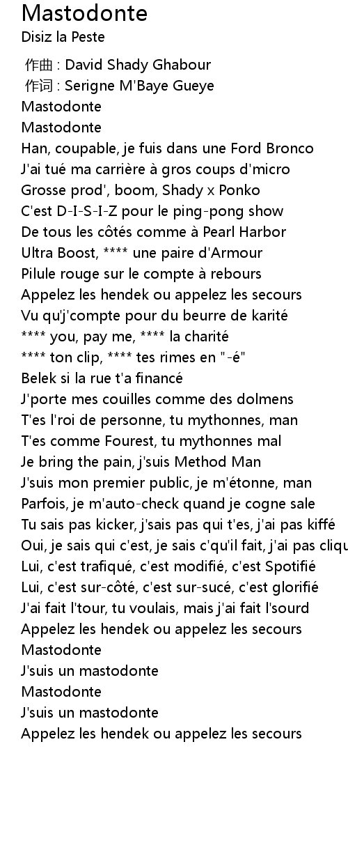 | [01:32.04] | J'suis un mastodonte |