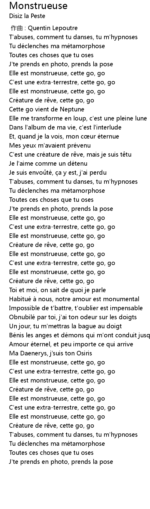 | Song | Monstrueuse |