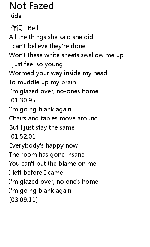 | [03:02.36] | I' m glazed over, no one' s home |