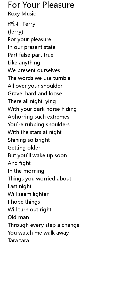 | Song | For Your Pleasure |