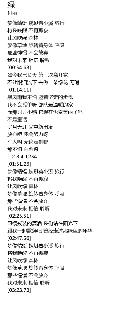 | [01:18.75] | 我不会孤单呀 部队最温暖的家 |