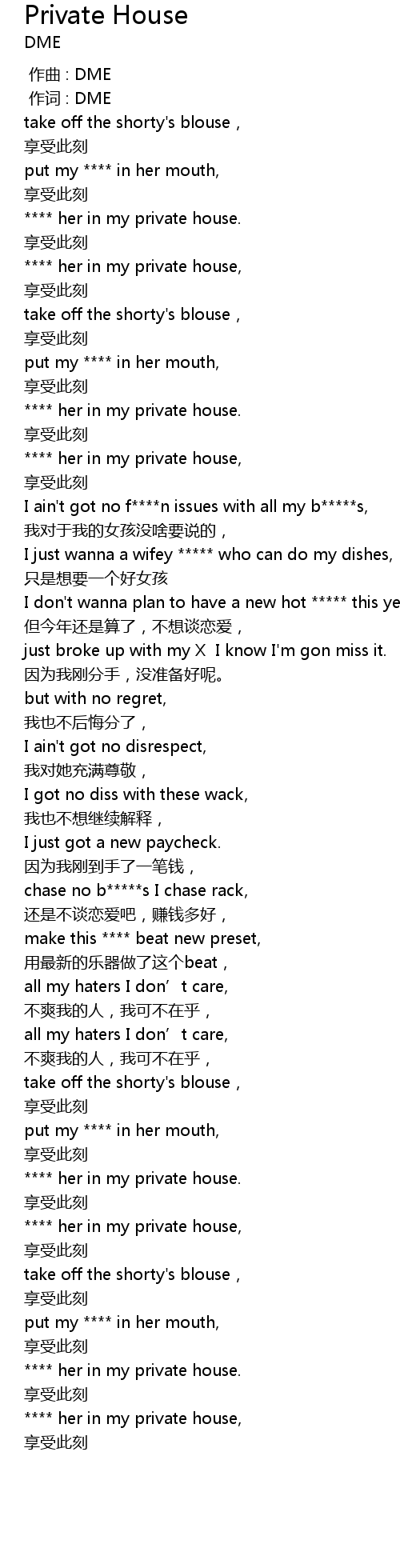 | [00:18.107] | **** her in my private house. |