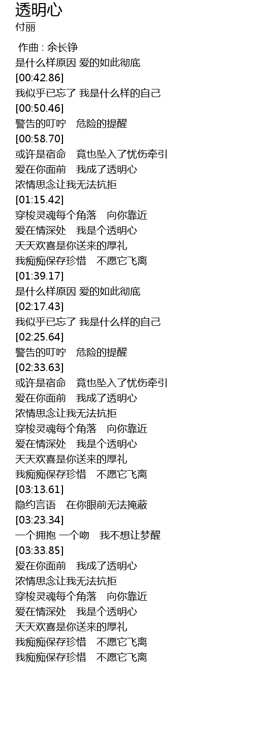 | [02:42.91] | 爱在你面前 我成了透明心 |