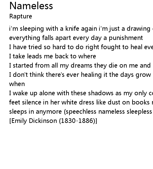 i'm sleeping with a knife again i'm just a drawing on the wall sooner or later everything falls apart every day a punishment |