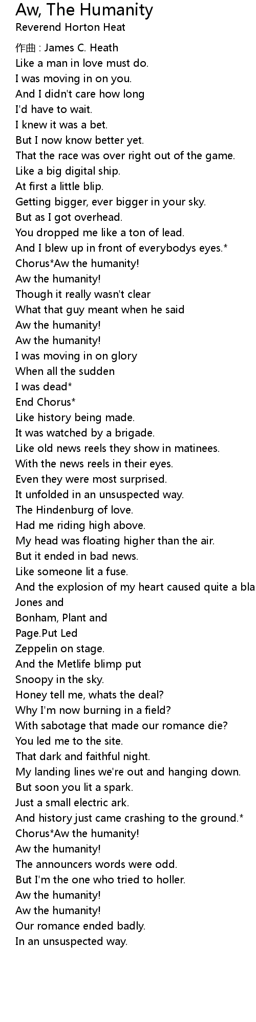 | Chorus*Aw the humanity! | |