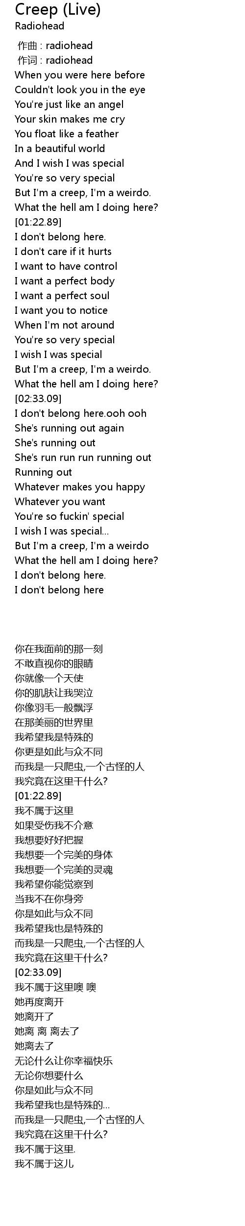 | [02:16.07] | But I' m a creep, I' m a weirdo. |