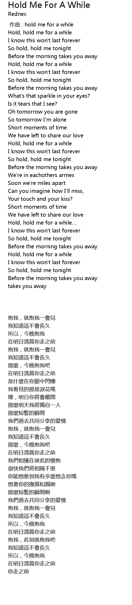 | Song | Hold Me For A While |