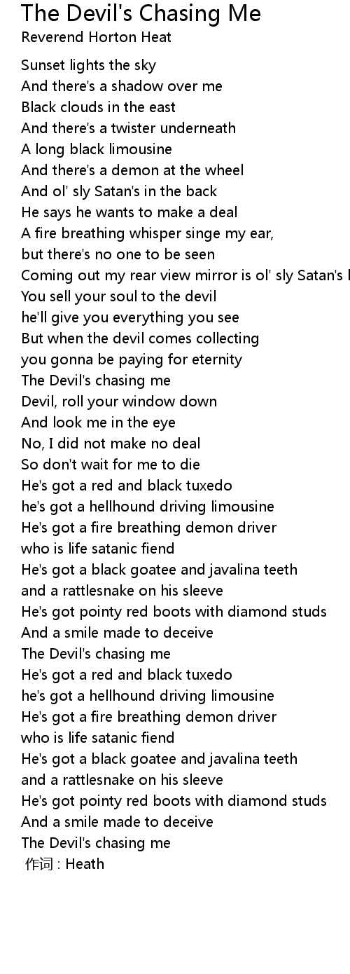 | [01:06] | Coming out my rear view mirror is ol' sly Satan's limousine |