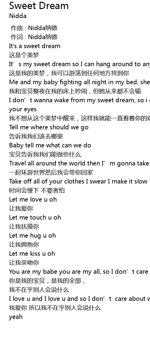 | [00:34.590] | It’s my sweet dream so I can hang around to anywhere looking for u |