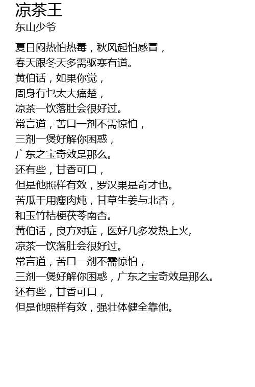 | [00:40.940] | 凉茶一饮落肚会很好过。 |
