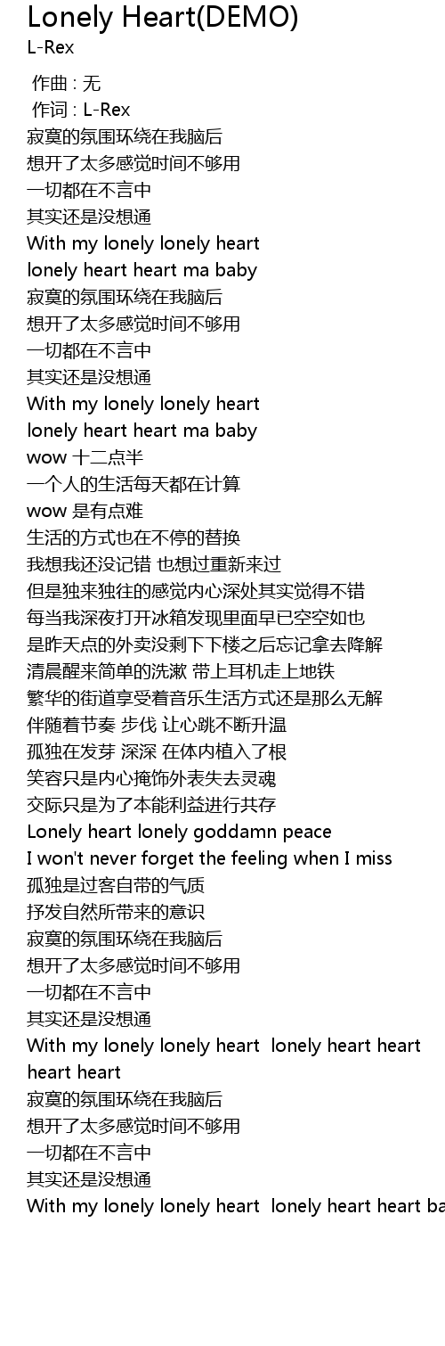 | [01:50.538] | With my lonely lonely heart lonely heart heart |