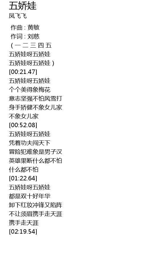 | [01:51.73] | 五娇娃呀五娇娃 |