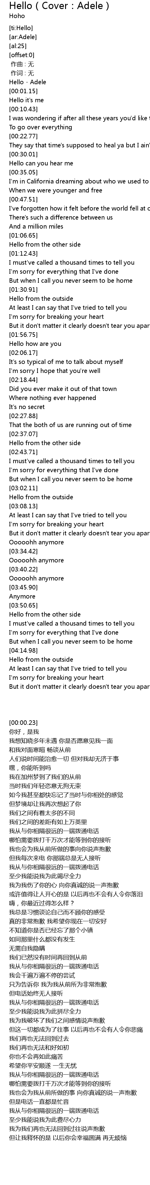 | [00:00.23] | Hello Adele |