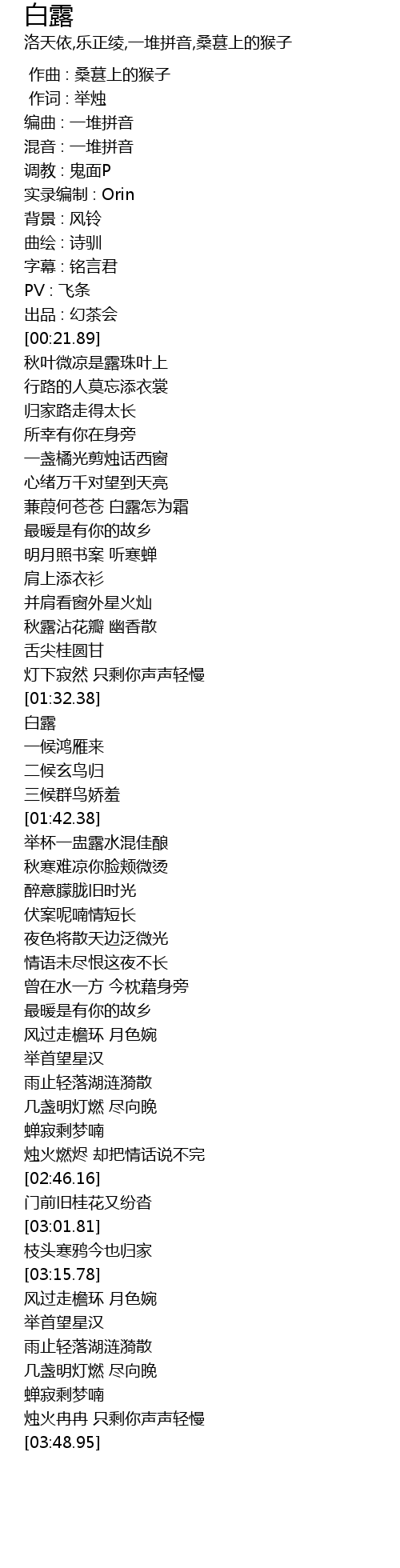 | [01:17.94] | qiū lù zhān huā bàn yōu xiāng sàn |