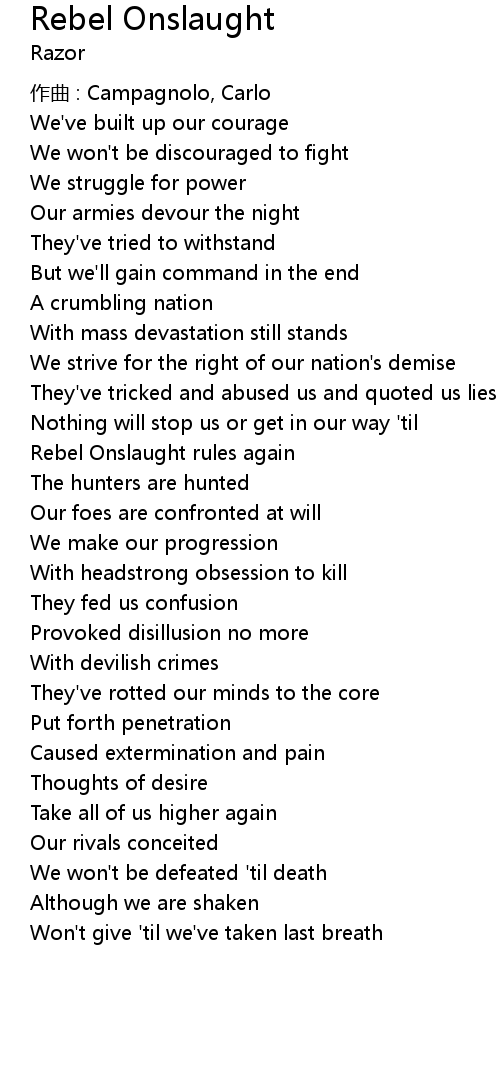 | Song | Rebel Onslaught |