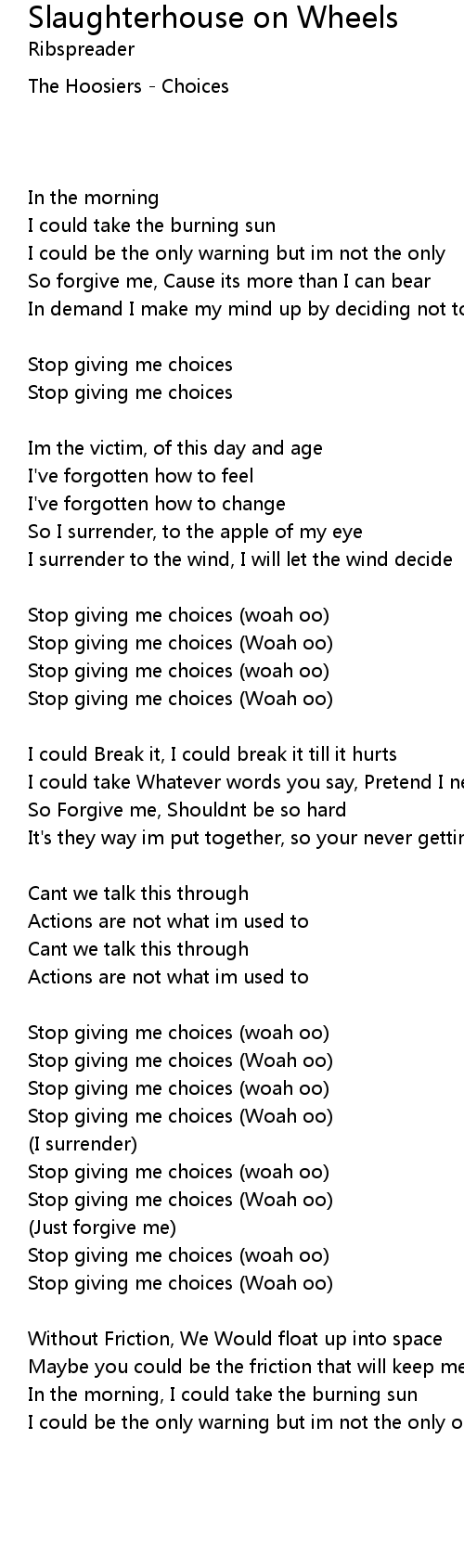 Stop giving me choices (woah oo) |
