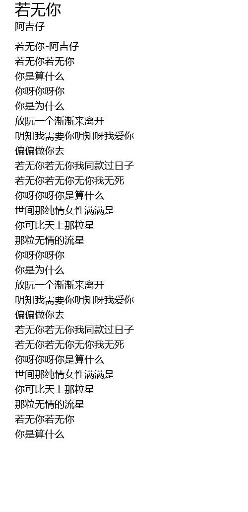 | [00:03.17] | 若无你-阿吉仔 |