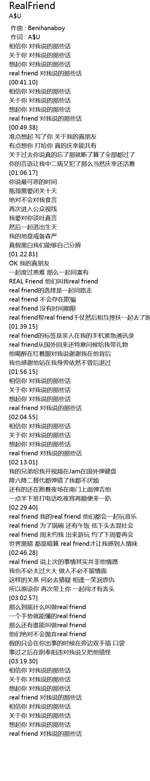 | [03:34.44] | real friend 对我说的那些话 |