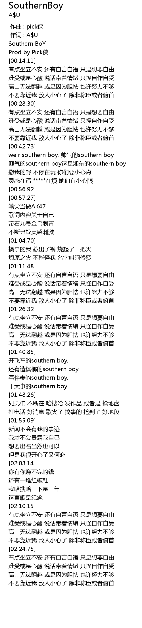| [01:44.68] | 写伴奏的southern boy. |