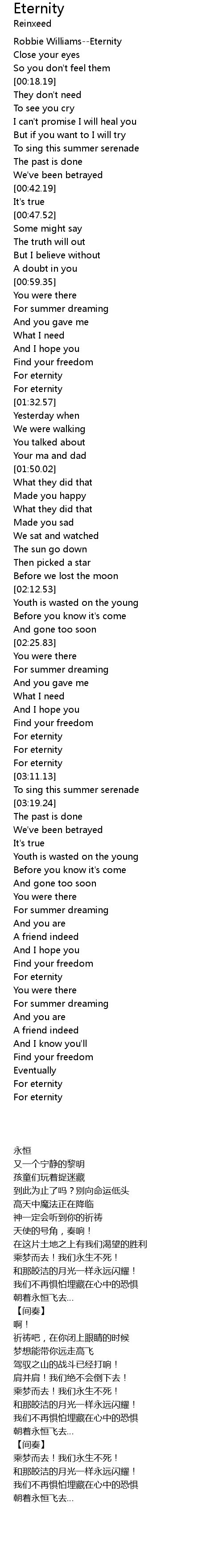 | [00:01.27] | Robbie Williams--Eternity |