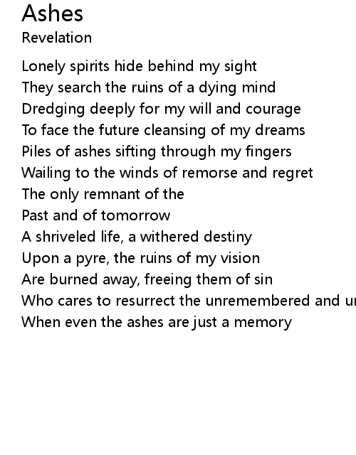 | Piles of ashes sifting through my fingers | |