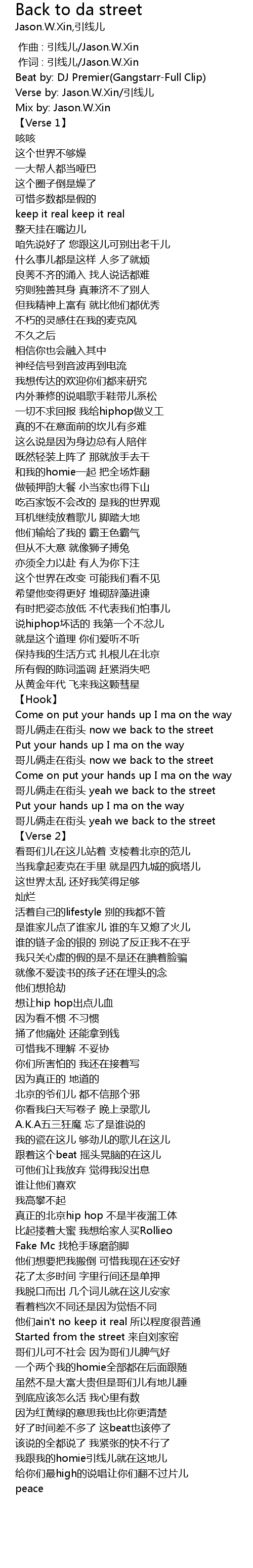 | [01:52.893] | gē ér liǎ zǒu zài jiē tóu yeah we back to the street |