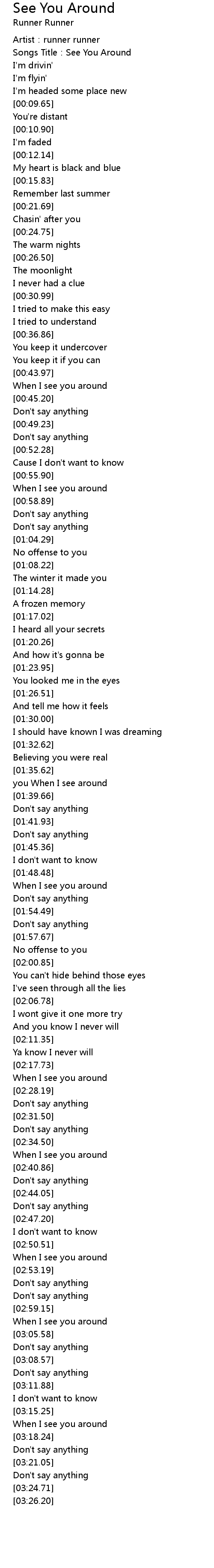 | [00:01.57] | Songs Title:See You Around |