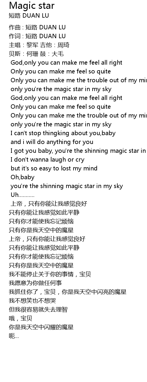 | wǒ zhuā zhù nǐ le, bǎo bèi, nǐ shì wǒ tiān kōng zhōng shǎn liàng de mó xīng | |