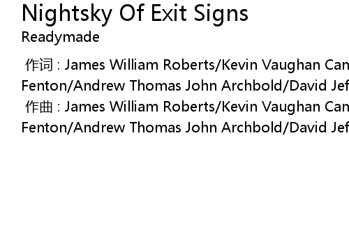 | [00:00.000] | 作曲 : James William Roberts/Kevin Vaughan Campbell/Jason Fenton/Andrew Thomas John Archbold/David Jeffrey Tedman |