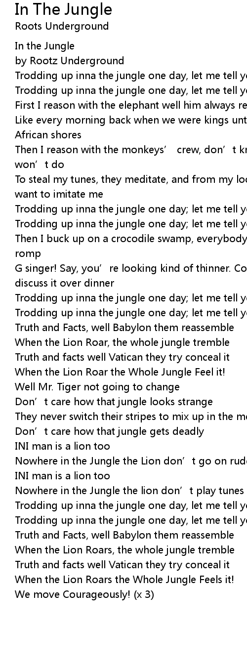 | Nowhere in the Jungle the Lion don' t go on rude | |