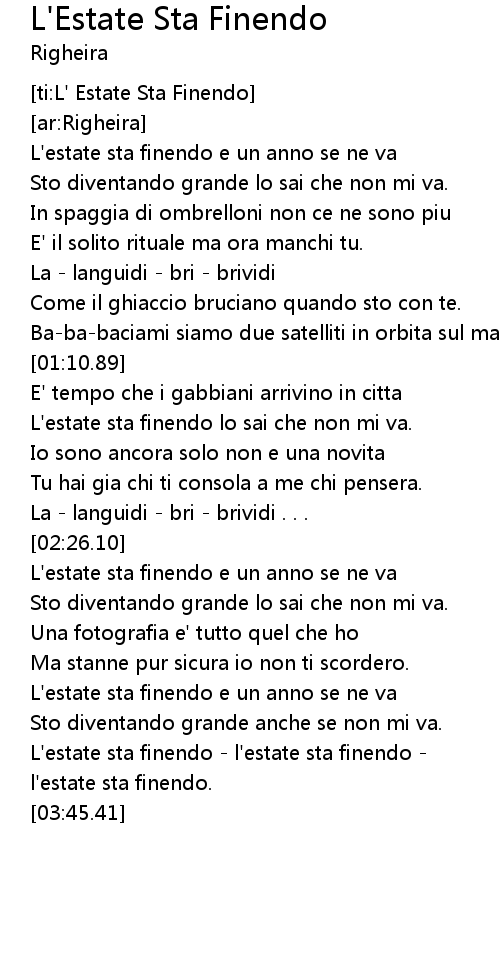 | [03:39.55] | L'estate sta finendo - l'estate sta finendo - |